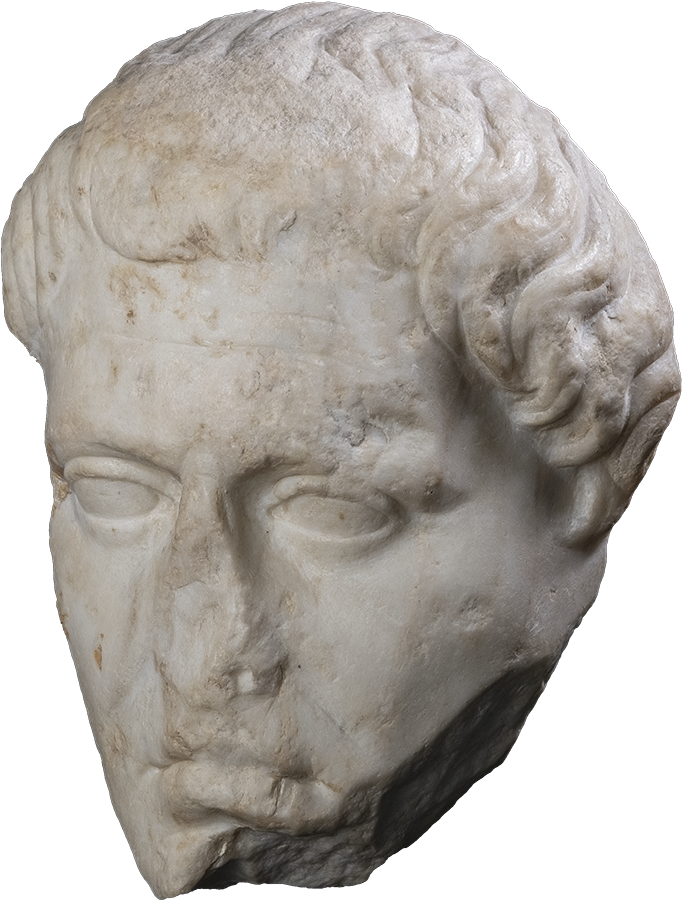 Il “ritratto virile” accoglie il visitatore all’ingresso della sezione funeraria entro una struttura che vuole evocare la probabile originaria collocazione: una nicchia di un monumento funerario. Si tratta di un’opera in marmo bianco microcristallino che, pur avendo subito diversi danneggiamenti, risulta di buonissima fattura. La scultura rappresenta il ritratto di un personaggio di età matura, dall’aspetto grave e malinconico e dai tratti somatici resi con sobrio e pacato naturalismo.